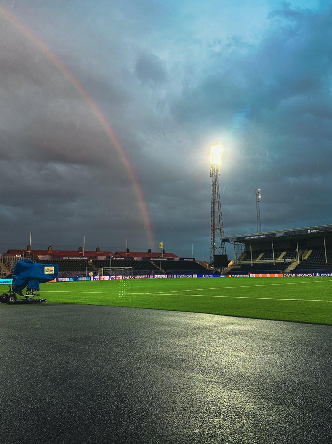雷速体育9月30日讯 北京时间明日凌晨3:00,博德闪耀便将在新赛季欧冠第二轮比赛中坐镇主场迎战热刺,这将也是阿斯普米拉体育场历史上的第一场欧冠正赛。 博德闪耀的主场阿斯普米拉体育场始建于1966年,起初是一座带有田径跑道的多功能型体育场,直到上90年代进行改造升级后拆除了外侧跑道,从此作为博德闪耀足球队的专用球场。 该场馆共设有四个看台,最多可容纳8270名观众,是本赛季欧冠联赛第二小的主场(仅高于卡拉巴赫主场)。值得一提的是,球场所使用的是附带地暖的人工草皮,也令不少到访的队伍感到不适应。 上赛季,博德闪耀曾在欧联杯半决赛与热刺有过交锋,当时他们在主场以0-2落败,如今即将再次在这里与同一个对手展开对决。 比赛前一天,阿斯普米拉体育场上空曾出现一道美丽的彩虹,不知这能否为“闪耀哥”带来好运。 |