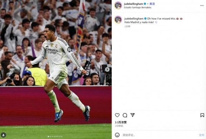 这场胜利的关键,无疑是贝林厄姆的致命一击。赛后,这位进球功臣不仅通过社交媒体晒出庆祝照,配文 “哦我是多么想念这(种感觉)。马德里前进,无需赘言!”,表达了对胜利的渴望和对球队的信心,还在接受采访时分享了内心的激动。 他表示:“这种感觉太棒了。时隔这么久之后,终于能在欧冠的重量级比赛中踢球,并打进致胜一球,我一直梦想着这一刻。” 同时,他也回顾了皇马近年的欧冠表现,“我加盟皇马的第一个赛季,在欧冠联赛后期的淘汰赛阶段,我们踢得并不好,但我们仍然找到了获胜的方法。去年,我们没能做到这一点,当我们踢得不好时,我们受到了惩罚。这就是为什么我们需要踢得更好,进更多球。”