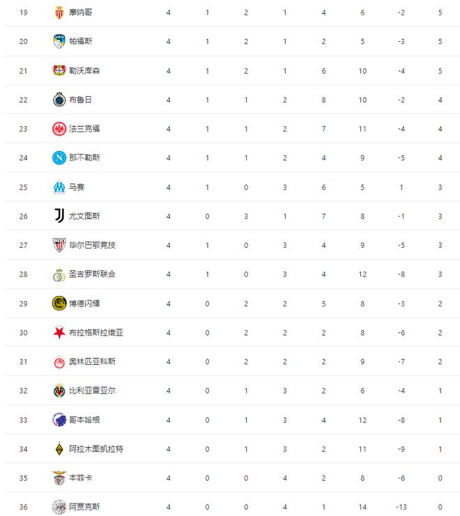 作为西甲劲旅,比利亚雷亚尔时隔三年重返欧冠正赛,这一轮客场面对首次欧冠正赛阶段的帕福斯,延续了低迷表现,最终0-1失利,四轮1平3负连续不胜,积分榜排名深陷淘汰区。此外,比利亚雷亚尔创造了一项耻辱纪录,他们成为首支在欧冠比赛中输给塞浦路斯球队的西班牙球队。 对于取胜的帕福斯来说,则是拿到了队史第一场正赛胜利,仅仅建队11年,真是不可思议。 最新积分榜如下: