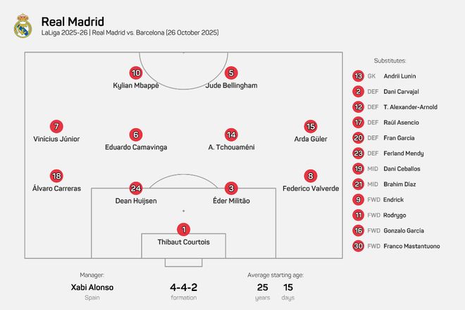 25岁15天!皇马排出了过去20年最年轻的国家德比首发
