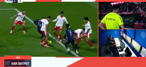 姆巴佩打入进球后,赫罗纳球员向裁判里卡多-布尔戈斯投诉,随后布尔戈斯接到VAR胡安-路易斯-普利多-桑塔纳的通知,称姆巴佩在射门得分前有手球嫌疑。 VAR说:“我建议你重新看一下,评估进球前是否存在潜在的手球情况,等你到屏幕前告诉我。” 布尔戈斯问道:“是在进球之前吗?” 当他站在显示器前时通知VAR:“好的,给我看看。” 普利多-桑塔纳回应:“听着,我看到球打到了他的手臂,紧接着姆巴佩就进球了。”布尔戈斯在看到画面后没有任何犹豫:“是的,没错。正确的决定,我要因为手球取消这个进球,可以吗?” 随后,他根据国际足球理事会规则12中的手球规定取消了这一进球,该规则明确指出,如果“直接用手或手臂将球打进对方球门,即使动作是无意的,包括守门员”以及“在球碰到手臂或手后立即进球,即使是无意手球”,都应被判罚手球犯规。 |