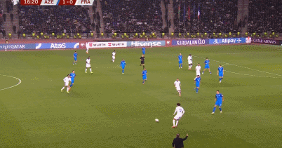 攻势不减的法国队,在第42分钟再次叩开了阿塞拜疆的球门,可惜埃基蒂克手球在先,导致凯夫伦图拉姆的进球,被主裁判无情吹掉,不过半场比赛结束之前,法国队还是扩大了领先优势,右侧角球开出后,造成阿塞拜疆球员自摆乌龙,高卢雄鸡带着3-1的优势,回到了中场更衣室。 下半场比赛胜券在握的法国队,明显在场上控制节奏,真正有威胁的进攻机会并不多,第71分钟埃基蒂克的禁区内无人盯防的打门没有踢正部位,浪费了改写比分的绝佳机会,好在并不影响法国队从客场带走胜利。