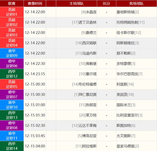 其他赛事比分: