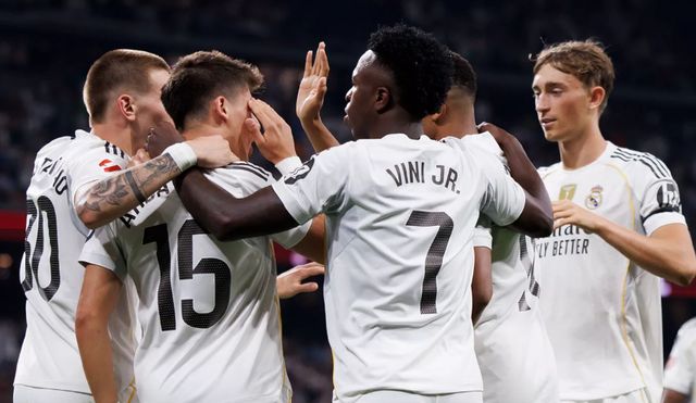 对姆巴佩来说,2025年最后的个人目标是冲击C罗纪录。2013年的C罗,在皇马50场攻入59球,12年来,无人能破这一纪录。皇马vs塞维利亚一役,姆巴佩若是梅开二度,就能以年度60球创造皇马新的纪录。 【强攻!皇马F4将联袂首发】 2025年的收官之战,皇马的目标是3分,还要用精彩的足球回馈伯纳乌球场的球迷。《马卡报》预测,皇马主帅阿隆索将祭出433阵型,维尼修斯、姆巴佩、罗德里戈、贝林厄姆集体首发出场。
