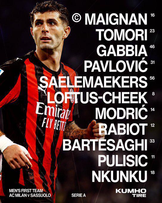 【首发】魔笛、美队领衔红黑迎萨索洛 意甲 12-14 19:18 北京时间12月14日19:30,意甲第15轮,AC米兰主场迎战萨索洛。红黑军团公布此役首发,“美队”、恩昆库双剑出击,魔笛坐镇中场。 AC米兰首发(352):迈尼昂/托莫里、加比亚、斯特拉希尼亚·帕夫洛维奇/萨勒马克斯、洛夫特斯-奇克、莫德里奇、拉比奥、巴尔泰萨吉/普利希奇、恩昆库 替补:泰拉恰诺、埃斯图皮尼安、萨穆埃莱·里奇、德温特、阿特卡梅、奥多古、亚沙里、皮塔雷拉