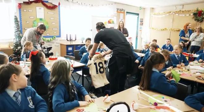 一名年轻的埃弗顿球迷在圣诞节前收到了来自格拉利什的意外礼物。格拉利什在得知男孩鼓舞人心的故事后,亲自前往学校,为他和同学们带来惊喜。走进教室后,将一件比赛中穿过的埃弗顿球衣和一双签名球鞋送给了名叫乔治的男孩。他还透露,乔治将作为吉祥物,出现在周六埃弗顿在希尔-迪金森球场迎战阿森纳的英超比赛中。 在讲述乔治的经历时,乔治的外公基思在接受天空体育采访时表示:“他还在襁褓中时就失去了父亲。最近,他的奶奶也离世了,随后他的妈妈杰玛身体出现严重问题,被确诊为第四期淋巴癌,并接受了相关治疗。但在整个过程中,他始终保持积极,从未抱怨过一句。他就是这样默默承受、继续前行,我真心觉得他是个小小的明星。”送完礼物后,格拉利什还陪伴乔治一起制作圣诞装饰品。