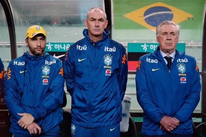 “吃螃蟹”的欧洲冠军教练 五次带队夺得欧冠,拿遍欧洲五大联赛冠军,或许对于卡尔洛·安切洛蒂来说,继续再执教欧洲俱乐部似乎缺少了挑战。不过,第一次成为国家队主帅就是执教巴西队,外界还是认为来自欧洲的安切洛蒂有些“艺高人胆大”。当然,意大利教头此前与巴西队的传闻可谓是由来已久,2022卡塔尔世界杯之后巴西足协就倾心于安切洛蒂,但此后皇马、巴西足协和安切洛蒂三方之间始终处于反复拉扯当中。在这段时间里,桑巴军团曾由U20主帅梅内塞斯和弗卢米嫩塞主帅迪尼斯临时带队,但后者在世预赛三连败令巴西足协只得启用B计划聘任多里瓦尔。然而这位接班人也并未给巴西队带来什么正向改变,最终在世预赛1比4惨败阿根廷后被炒了鱿鱼。