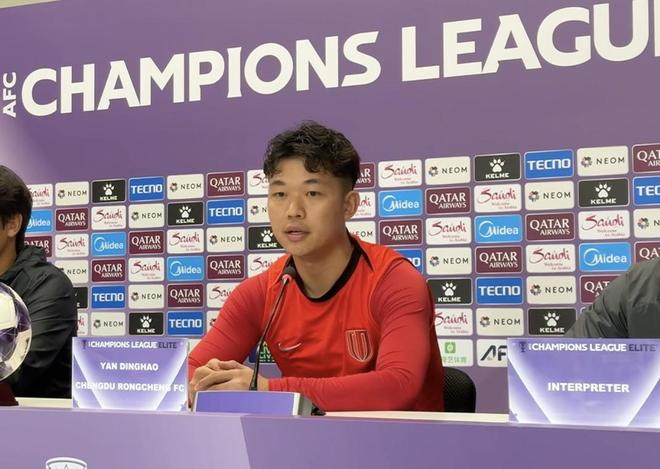 9月29日,成都蓉城对阵江原FC的赛前新闻发布会,球员严鼎皓随主帅徐正源出席。