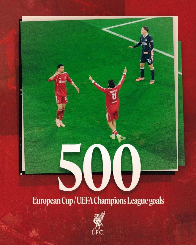 里程碑,索博斯洛伊打入利物浦队史欧冠第500球