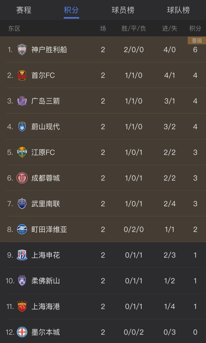 亚冠综述:中超3队本轮1胜2平不败!蓉城升晋级区申花海港淘汰区