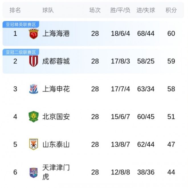随着上述4场比赛结束,中超争冠形势继续白热化:前三名,仅相差2分!申花队58分,落后海港队2分,在联赛只剩下2轮的情况下,争冠主动权已经不在手里。