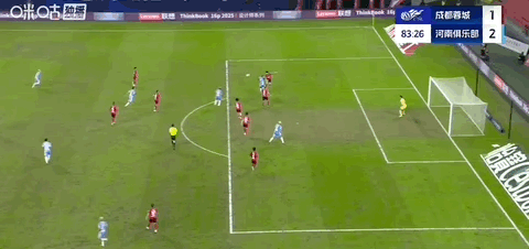 第83分钟,何超不停球直接在禁区外轰出超级世界波,帮助河南2-1反超比分!