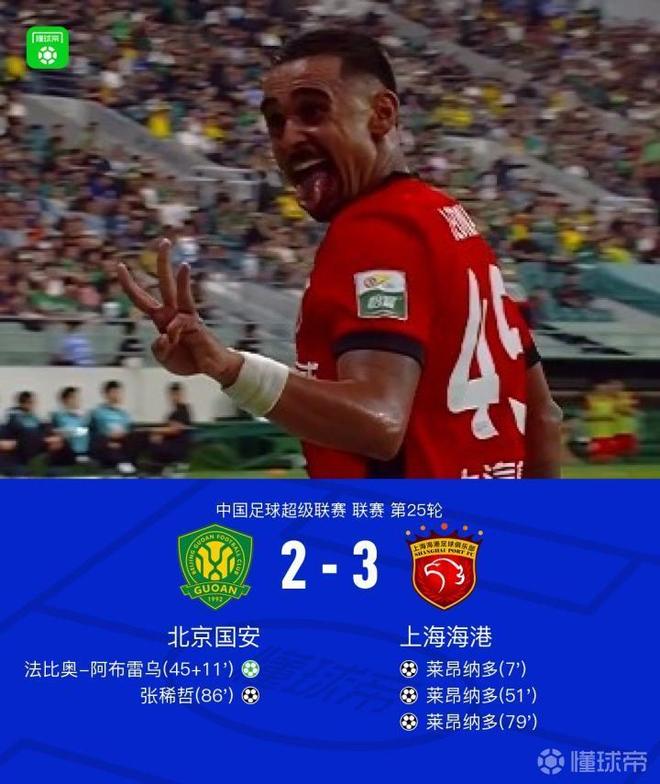 第二十五轮 北京国安2-3上海海港 又是一场焦点大战,国安在主场迎战上海海港。在联赛进入下半场后,国安的状态有所起伏,莱昂纳多在工体完成戴帽让国安逐渐退出了争冠行列,时任国安主帅塞蒂恩也成为了球迷口诛笔伐的对象。