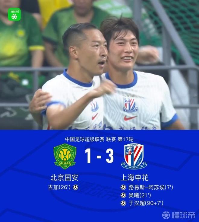 第十七轮 北京国安1-3上海申花 本场比赛在当时绝对是赛季的“天王山之战”,联赛第一的北京国安与第二的上海申花在工体迎来直接对话。震撼的全场tifo,62291人现场观战展现了比赛的火爆程度。最终申花队凭借阿苏埃、吴曦和于汉超的进球在工体带走3分结束了工体12连败,在积分榜上也反超国安升至榜首。